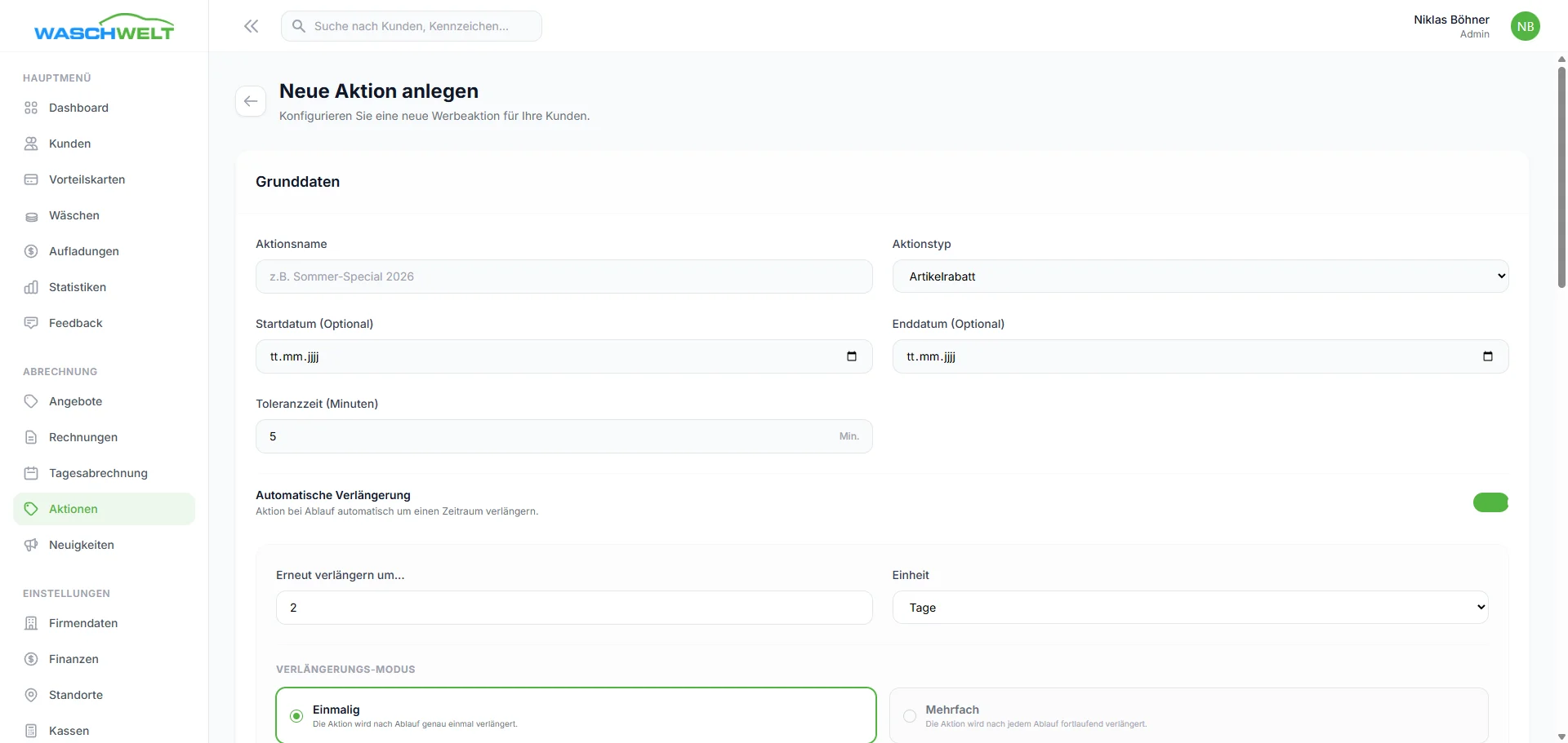 - Loyalty-Features: Konfiguration von Happy Hours und individuellen Bonus-Tiers.