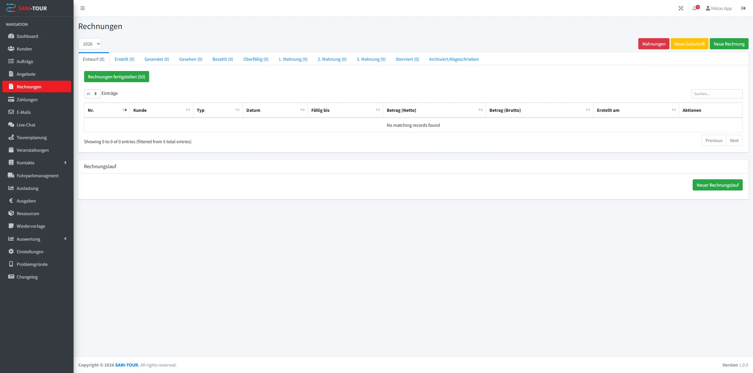 - Rechnungswesen: Automatisierter Rechnungslauf, detaillierte Statusverfolgung (Entwurf, Erstellt, Bezahlt, Überfällig) und integriertes Mahnwesen für einen gesunden Cashflow.