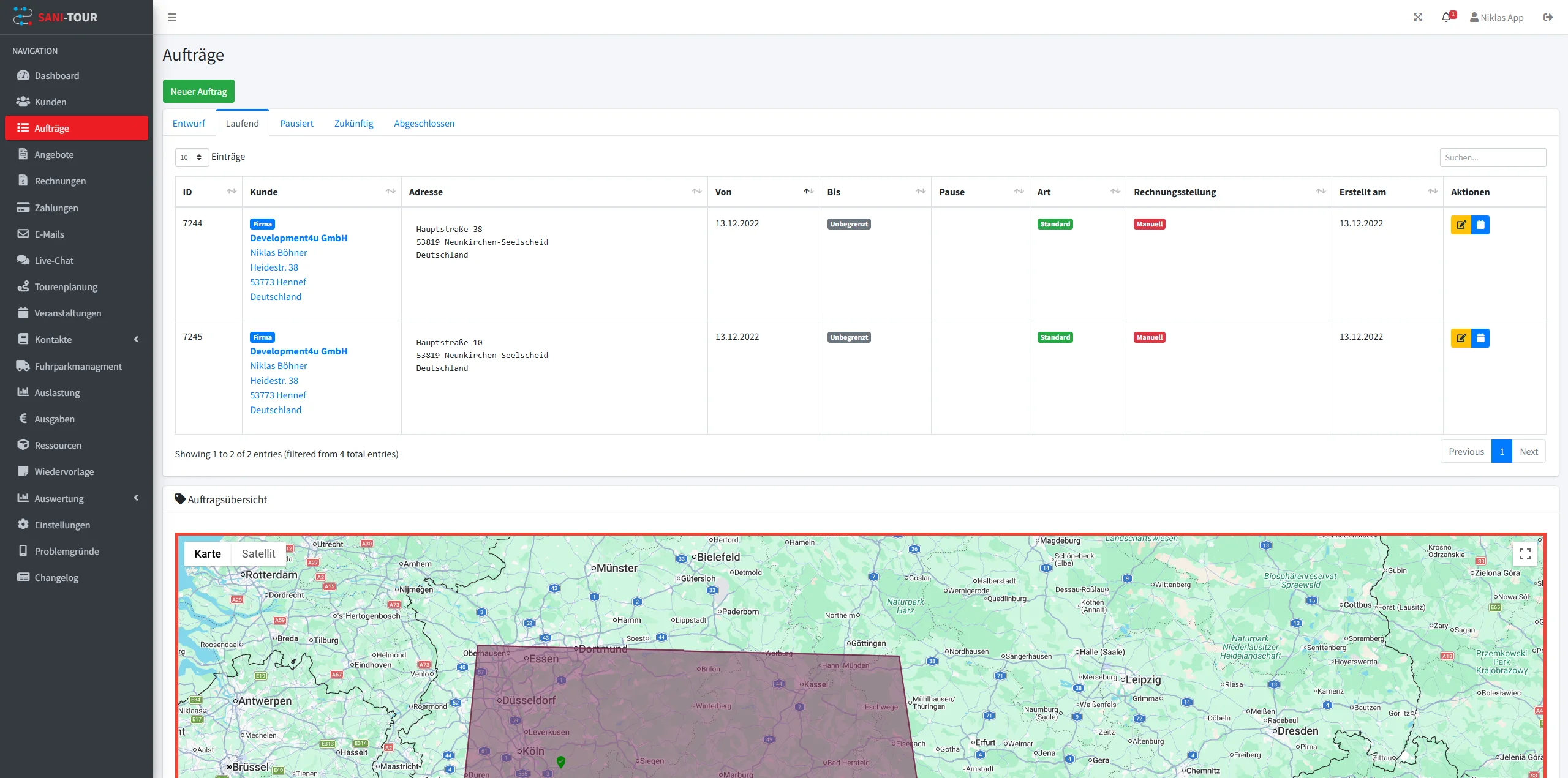 Für SANI-TOUR wurde eine umfassende, webbasierte Software-as-a-Service (SaaS) Lösung entwickelt, die speziell auf die komplexen logistischen und administrativen Anforderungen von WC-Vermieter abgestimmt ist. Das Ziel war die Ablösung isolierter Insellösungen durch eine zentrale, performante Cloud-Plattform, die alle Geschäftsprozesse effizient vernetzt.