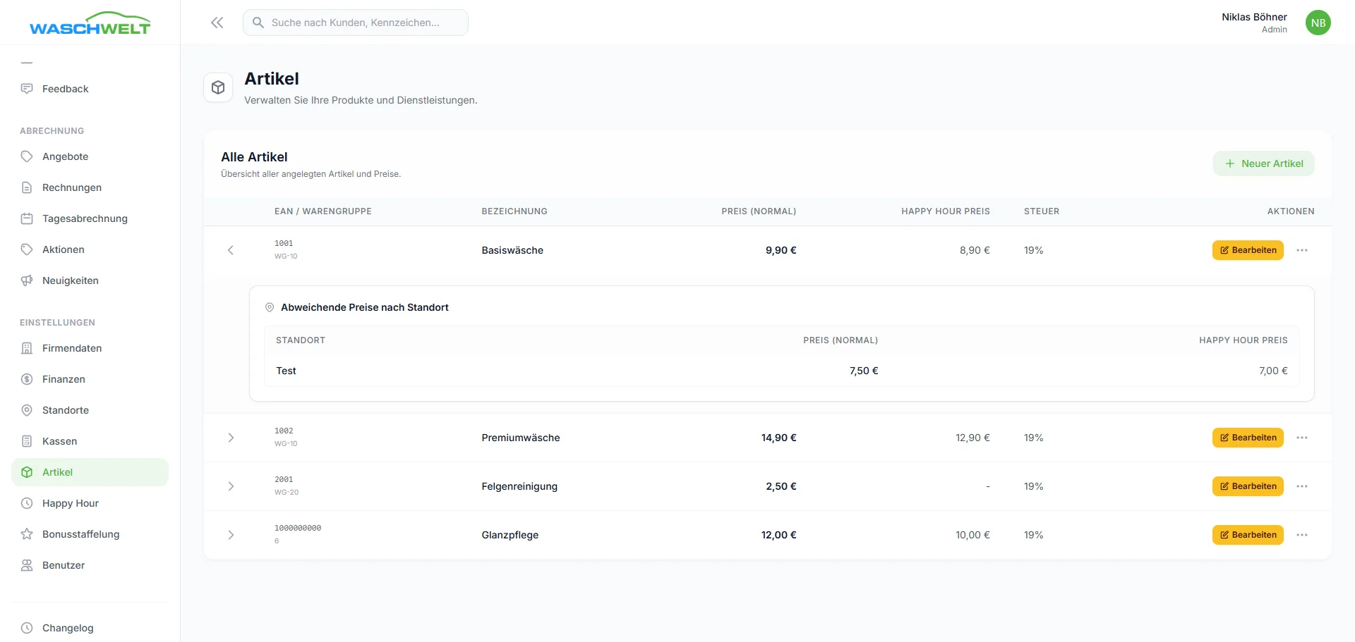 - Loyalty-Features: Konfiguration von Happy Hours und individuellen Bonus-Tiers.